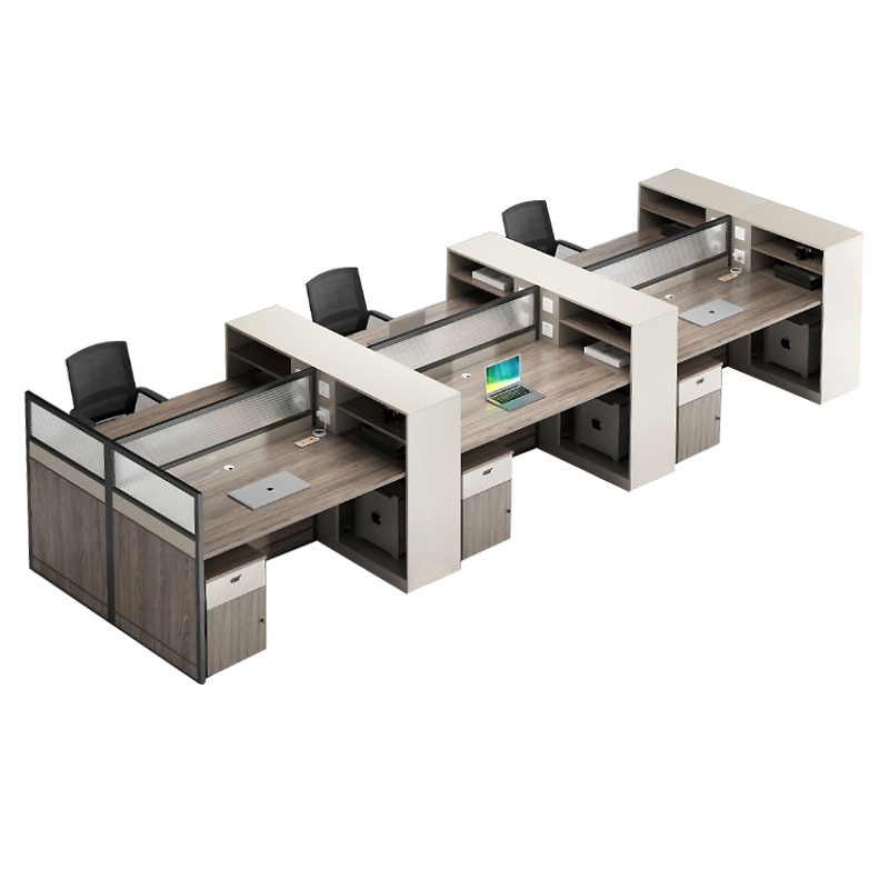 Mesa de escritório criativa para várias pessoas com gabinete alto